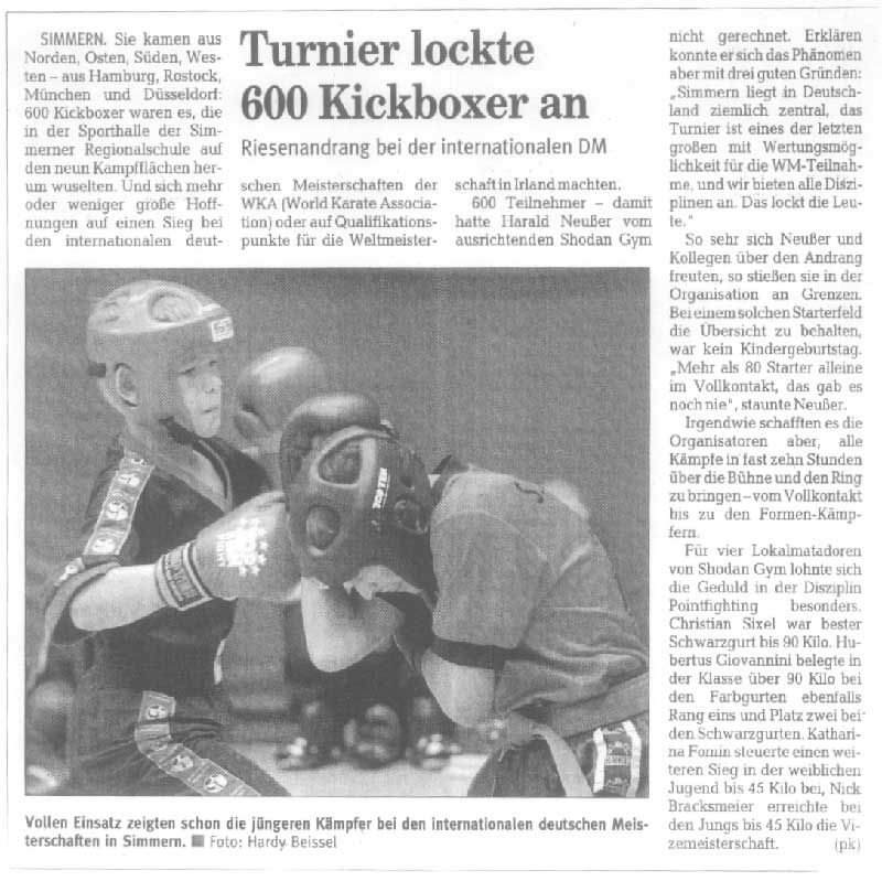 Bericht über die Internationale Deutsche Meisterschaft 2003 in Simmern der Hunsrücker Zeitung vom 30.06.03
